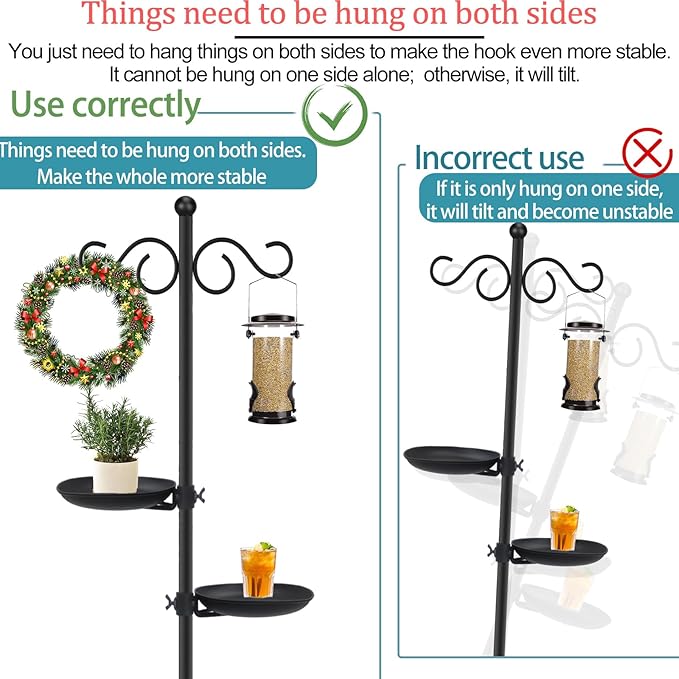 - EASY TO ASSEMBLE AND ADJUST: (28-74 inches) Adjustable height, suitable for any scene requirements of yours. A multi-functional stand can be assembled without tools. The wide gap between the hook and the pole can accommodate most bird feeders, lanterns, flower baskets, wind chimes, lights and other large hanging items