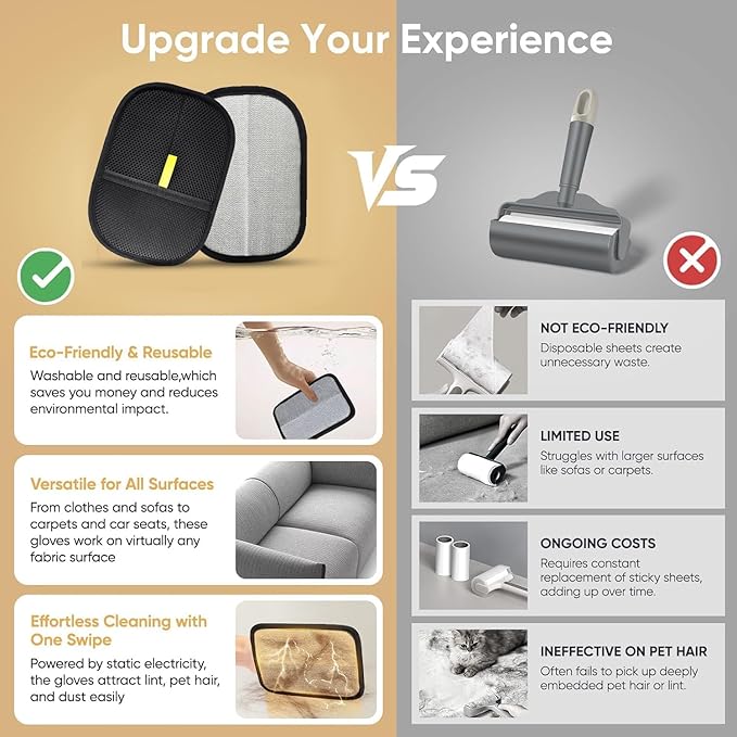 - Versatile on All Fabrics: Ultimate solution for your home! This pet hair cleaner glove work wonders on clothes, bedding, sofas, carpets, car seats, and virtually any other fabric surface plagued by pet hair