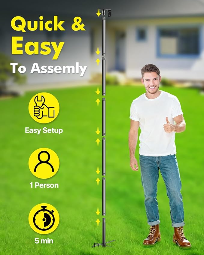 - Designed For Long Lasting Use - Crafted from 1-inch diameter, 1mm thick premium iron tubes with an anti-rust coating. Stronger than typical thin poles, provides 45% more bend resistance and 2x longer rust protection, making it ideal for year-round outdoor use without bending or corrosion.
