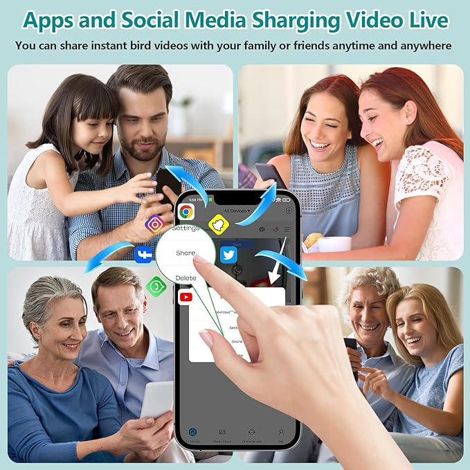 - Video Live Streaming - Recording and Sharing: This video bird feeder can watch bird live broadcasts in real time and record videos. It can be shared through social media or apps, or shared with your parents, children, and friends, allowing everyone to experience the fun of bird watching together!