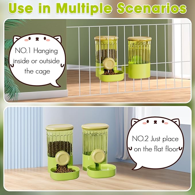 - Use in Multiple Scenarios - You can hang the water dispenser and the pet feeder inside or outside the cage, and the threaded knobs support stable installation with no titling; Also, you can just place the on the flat floor.