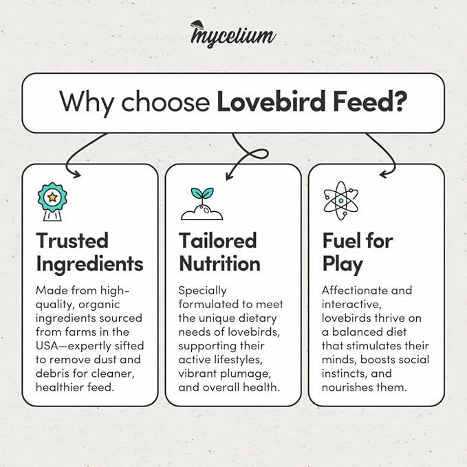 Mycelium Lovebird Feed (5 LB Bag) | Organic, Clean Seed Blend for Lovebirds & Small Parrots | Supports Skin & Feather Health | Non‑GMO, Shell-Free Nutrition | USA Made