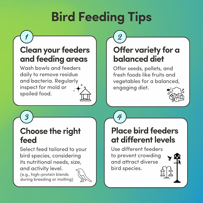 - Balanced Protein & Fat Levels: With 14.1% protein and 5.2% fat, it fuels daily activity, feather maintenance, and metabolic health in parakeets and small pet birds.