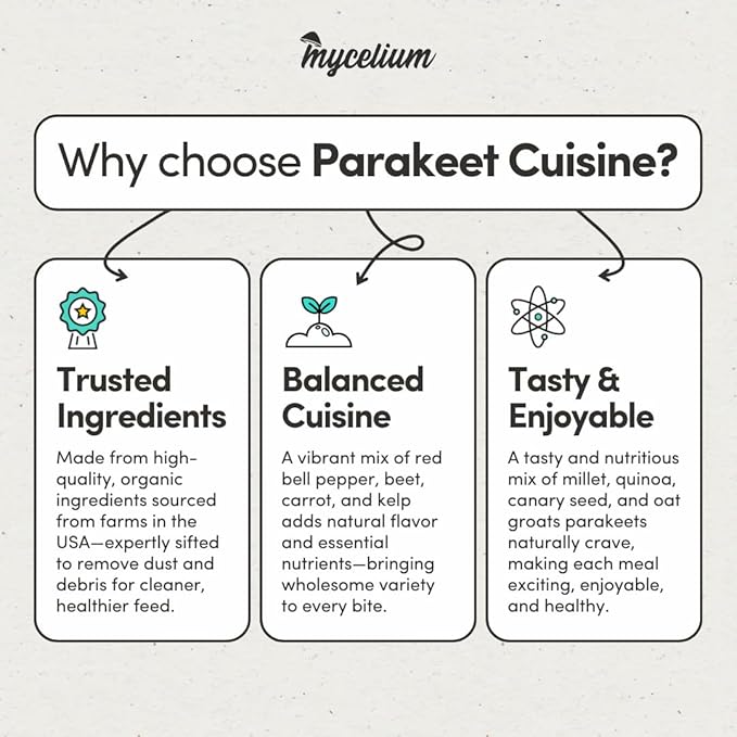 Mycelium Parakeet Cuisine Bird Food (5 LB Bag) | Organic, Nutritious Parakeet Feed with Real Fruits, Veggies & Vitamins | Supports Digestion & Daily Energy | Non-GMO, Filler-Free, Made in USA
