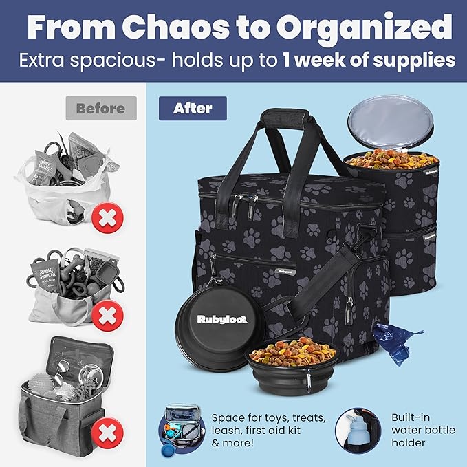 The Original Doggy Bag™- Dog Travel Bag for Supplies - Ultimate Gift for Dog Moms & Dads, Doggy Lovers & Pet Owners for Christmas- Includes 2 BPA-Free Travel Bowls and 2 Food Containers: Paw Print
