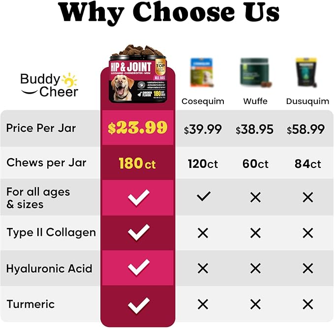 - 【Double the Quantity, Double the Value:】 Our dog joint supplement provides 180 chews per bottle, twice the amount of others, delivering up to 4 months of support for dog's joint health and flexibility.