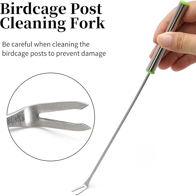 - Built to Last and Easy to Clean: Made from stainless steel and high-quality plastic, each piece is durable, rust-resistant, and easy to rinse after use. Compatible with your favorite bird cage cleaner spray, this kit ensures a fresh and hygienic cage while keeping your bird cleaner tools in top condition