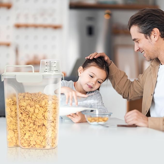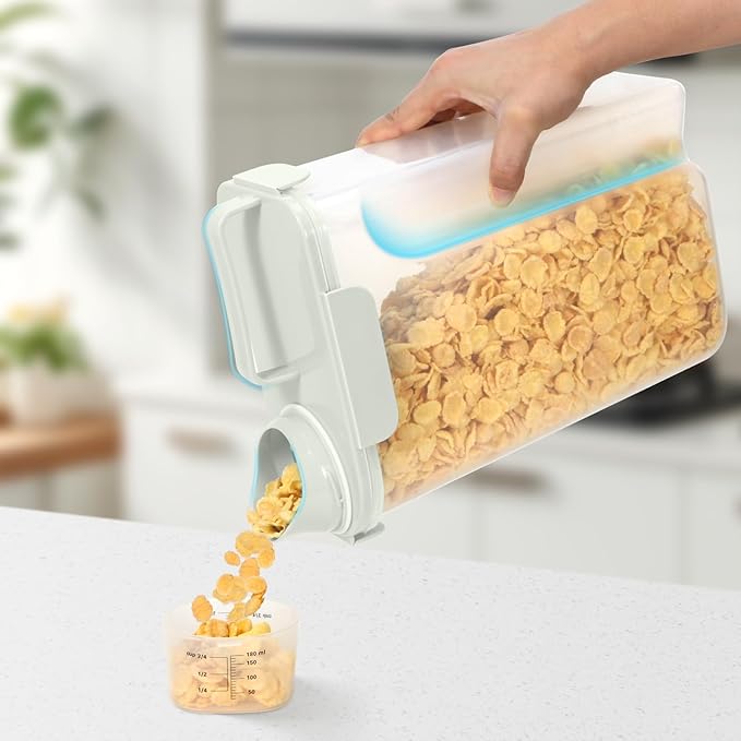 - MESS-FREE FOOD DISPENSER: The cereal storage container features a pouring spout makes it a breeze to dispense your ingredients. Its ergonomic design offers a comfortable grip for easy, single-handed pouring