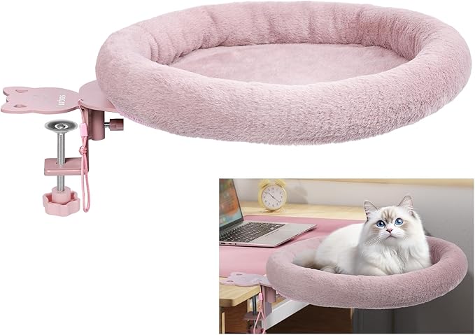 Rotating Cat Desk Bed - 40 LBS Chair-Side Cat Sleeping Basket with Bed for Desk, 360° Swivel & Removable Washable Cushion for Office Comfort(Pink