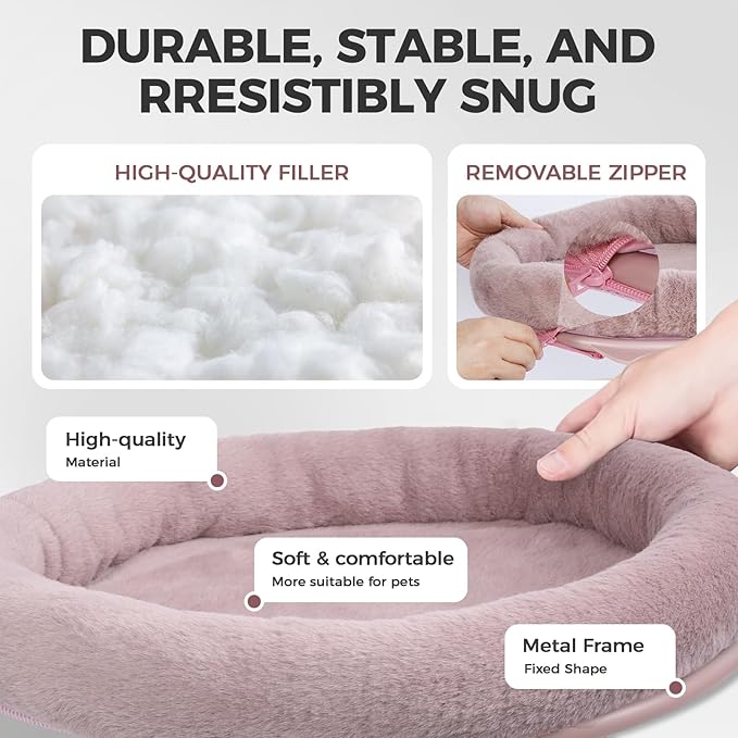 - Sunken Design for Secure Enclosure:Emulating the security of cardboard boxes, the circular frame creates a deep, enclosed space. The breathable mesh and plush filling contour to your cat's body, satisfying their instinct to hide while observing their surroundings, promoting deep relaxation.