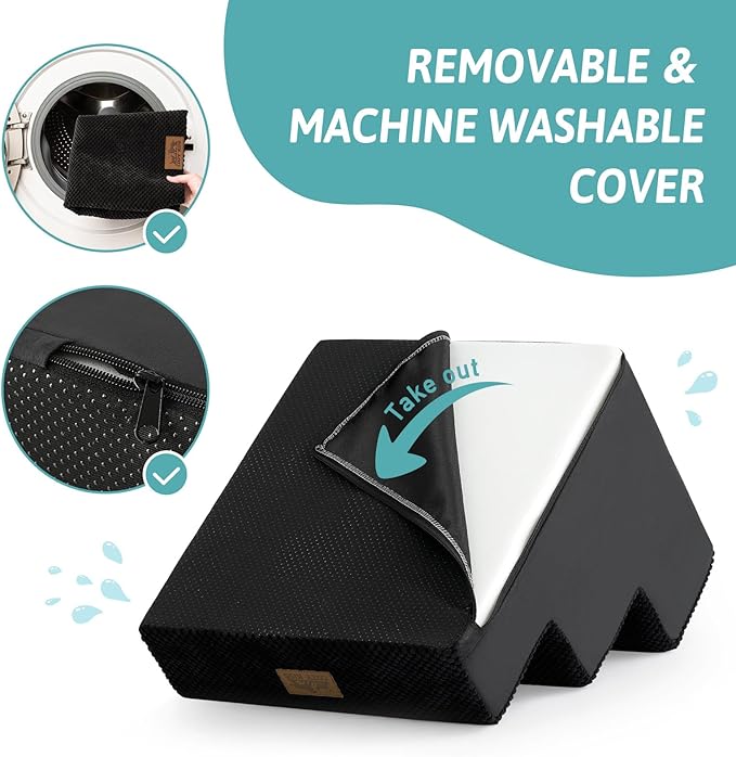 - Non-Slip Base and Removable Cover: Our dog steps for beds are equipped with a non-slip base featuring rubber dots for extra grip, minimizing movement during use. The pet steps cover is waterproof inner side, so you don’t have to worry about stains seeping into the foam. The outer cover is removable and machine washable for easy cleaning