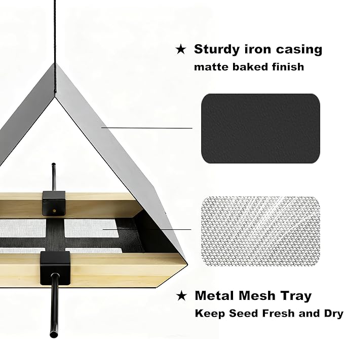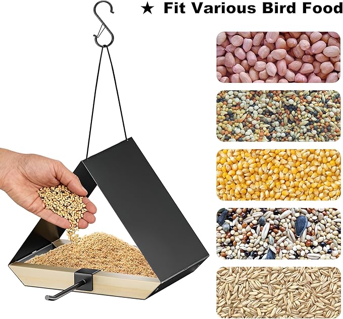 - 【Sturdy Durability for Year-Round Use】Built with high-quality metal, the HOSUN Black Metal Roof Bird Feeder withstands rain, snow, and harsh sunlight without denting, cracking, or breaking. Its robust metal roof and frame ensure long-lasting performance, making it a reliable choice for year-round outdoor use perfect for keeping your backyard birds fed in any weather.