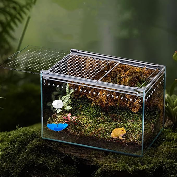 - Cute Design: The unique umbrella-like shape, with a combination of blue, purple, and green, creates a striking visual appeal. Small pets like frogs find it as if they are nesting under a miniature umbrella, creating a playful and adorable environment that enhances their captive environment.