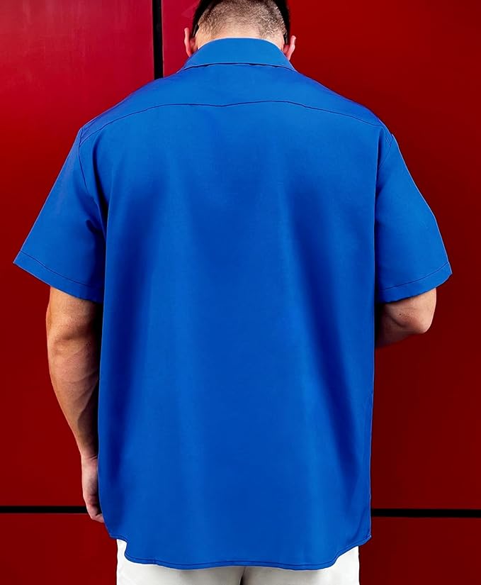- PATRIOTIC DESIGN: Bold American eagle graphic with red, white, and blue stars pattern on a royal blue button-down shirt, featuring striking black contrast panel