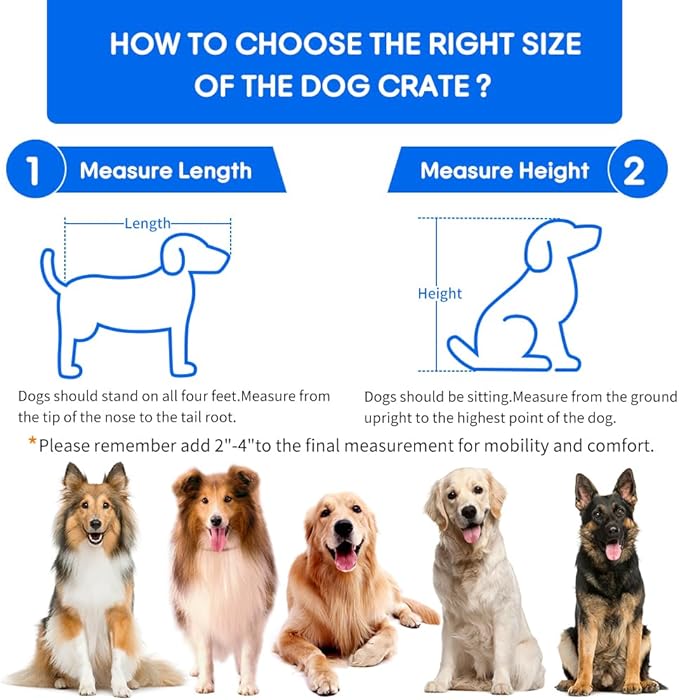 - 🐕[Upgraded Door Lock and Seat Cushion] This dog crate features an upgraded lock plate for aesthetics and ease of use. The door lock securely secures the door, ensuring your dog's safety and minimizing the noise of the door locking. The large dog crate comes with a matching soft seat cushion that's comfortable and removable, providing a comfortable and cozy experience for your dog.
