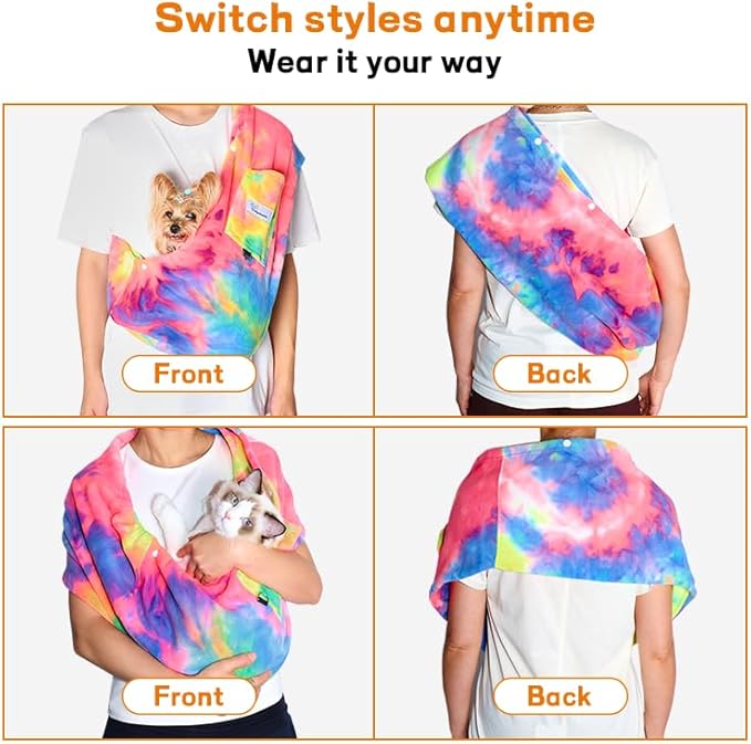 Dog Sling Carrier for Cats and Small Dogs – Hands Free Pet Sling with Adjustable Safety Strap & Buckle, Soft Cat Sling Carrier for Snuggling, Portable Dog Carrier Sling (Large, Fruits)