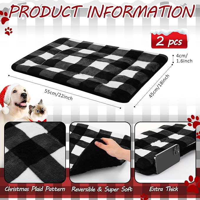 VitalCozy 2 Pack Self Warming Cat Mat Self Heating Pad Bed Reversible Machine Washable Reflects Body Heat Warm Thermal Pet Pad Crate Blanket for Feral and Indoor Cat (Black, White,22'' X 18'',Plaid)