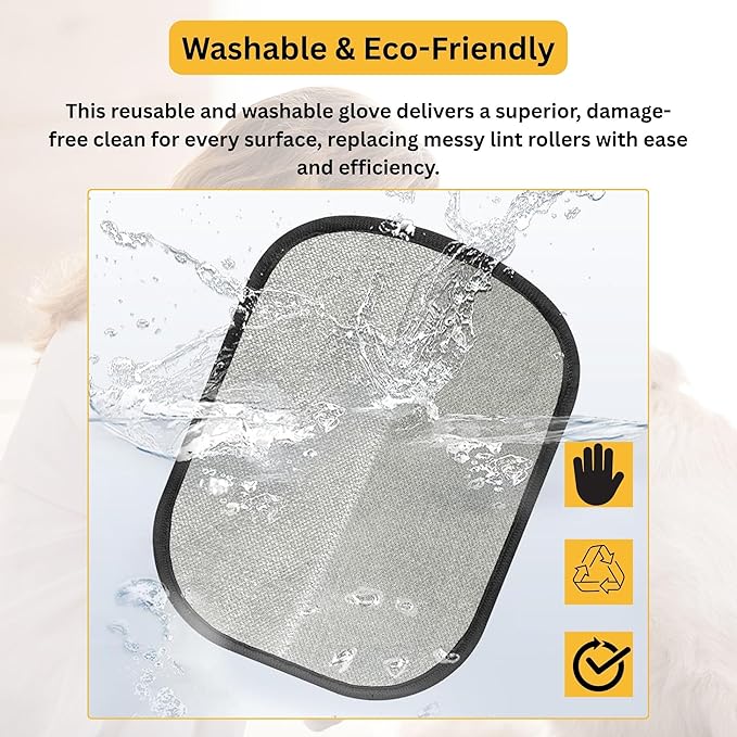 - Eco-Friendly & Easy to Clean – Unlike sticky rollers, these electrostatic pet hair remover gloves are washable, reusable and durable. Simply rinse and air dry. The lightweight design makes them the best pet hair remover for furniture, carpet and car.