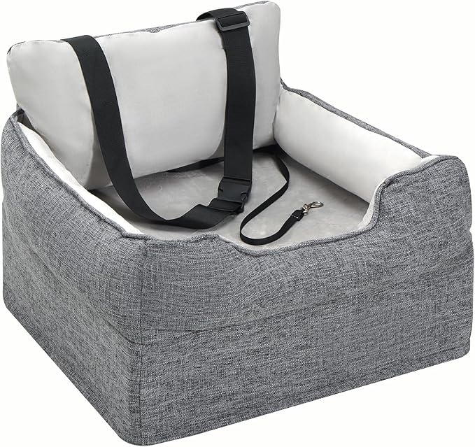 Avont Dog Booster Car Seat for Small/Medium Dogs Under 30 lbs, Detachable Washable Puppy Doggie Elevated Carseat Travel Bed for Car, Thick Cushion -Grey