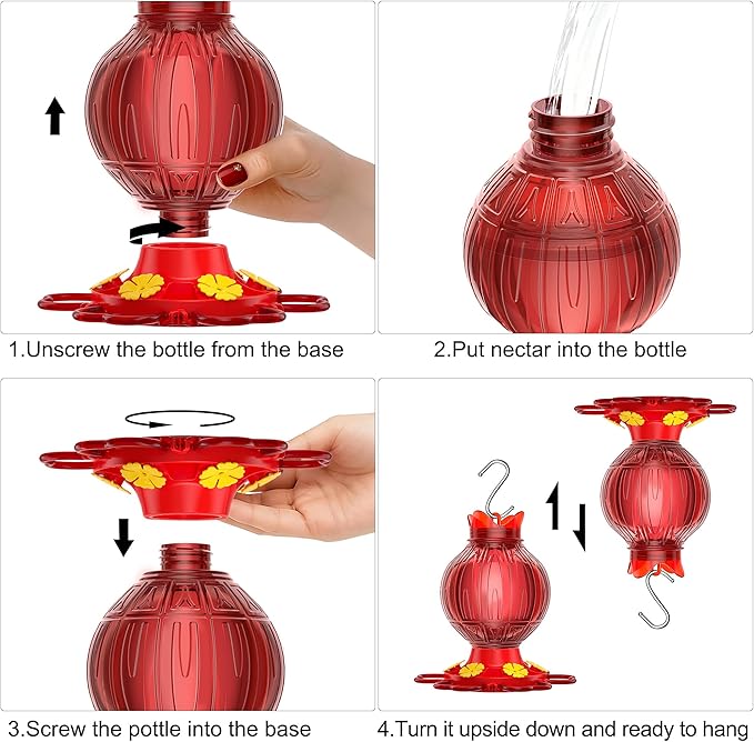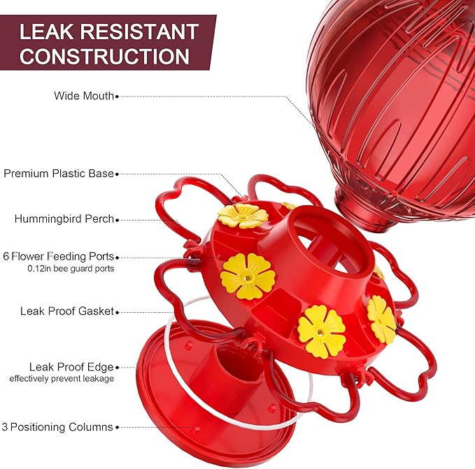 - 【Revolutionary Leak-Proof System】The wide-mouth bottom fill hummingbird feeder design allows quick nectar pouring without spills (funnel included). Tested to withstand 120°F(49°C)heat without warping, solving the #1 complaint of hummingbird feeders for outdoors hanging models. Outsells glass feeders 3:1 in humid regions