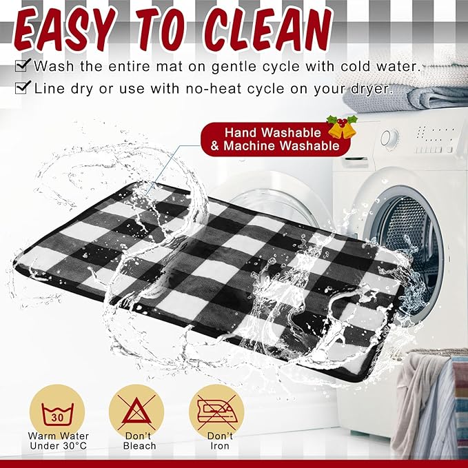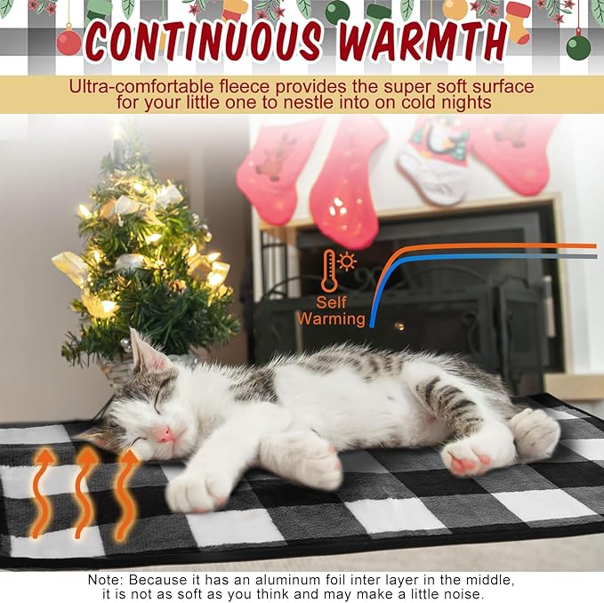 2 Pcs Large Self Warming Cat Pad Self Heating Cat Mat Bed Dog Crate Pet Blankets Thermal Heated Bed Mat for Outdoor Indoor Newborn Kittens Puppies Dog(Black and White Plaid,24 x 18)