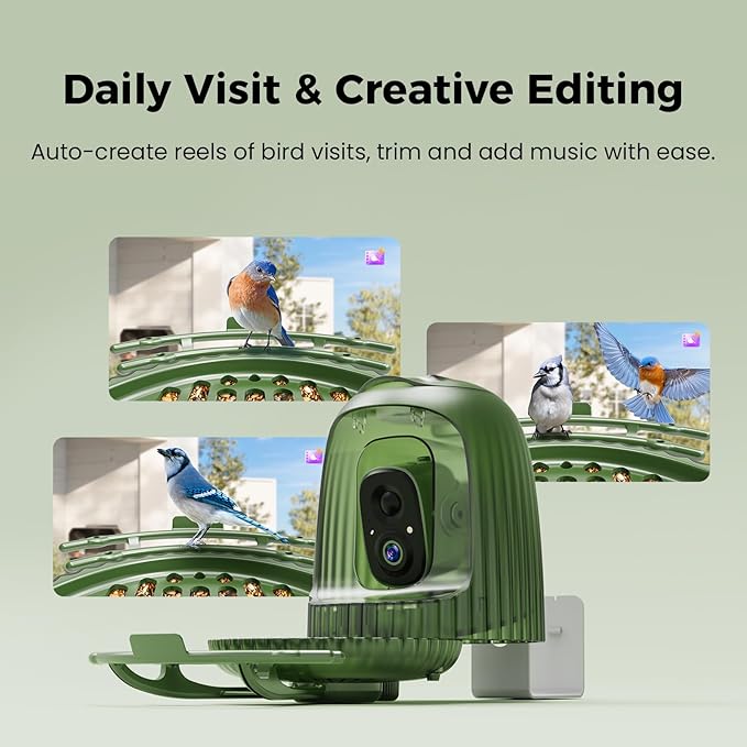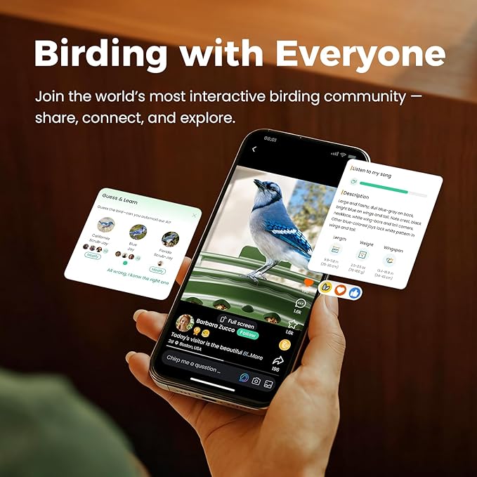 - Your Personal AI Bird Expert - Turn every bird sighting into a discovery. Our feeder's advanced AI bird recognition instantly identifies visitors, complete with fascinating knowledge cards. Dive into the exclusive community to share your video recordings, comment on stunning captures from around the world, and earn achievement badges. It’s more than a feeder; it’s your entry ticket to a global network of nature enthusiasts