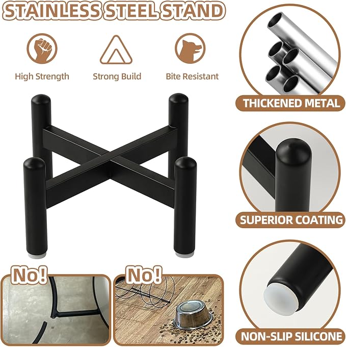 - High-Quality & Pet-Safe - Made from premium food-grade ceramic, the cat feeding bowl is lead-free and non-toxic. The cat bowl stand is made of stainless steel, providing a stable structure and long-lasting durability.