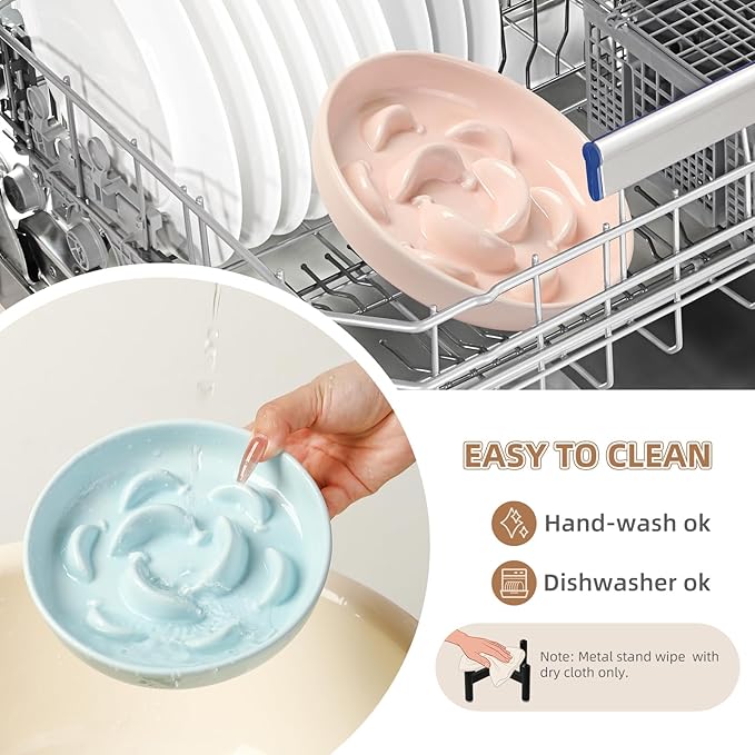 - Multi-Purpose & Easy to Clean - Ideal for cats and small dogs under 11 lbs (5 kg). The cat slow feeder bowl is microwave and dishwasher safe - and the stainless steel stand can be easily wiped clean with a dry cloth.