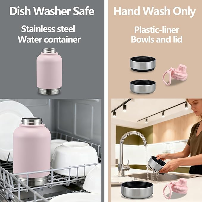 - Hand Wash Only: Do not use the bottle for boiling water, and do not clean it in a dishwasher. This is because the lid and the bowls’ liners are made of PP; exposing them to high temperatures (from boiling water or dishwashers) may cause deformation or damage.
