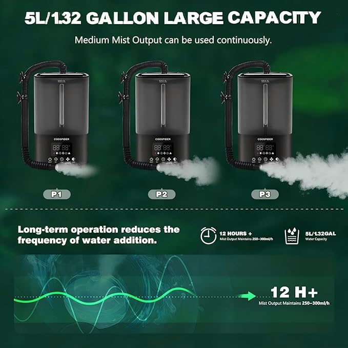 Coospider 5L Reptile Fogger Humidifier, Automatic Humidifiers for Reptiles Tank, Terrarium Humidifiers with Timer and Humidity Control, Reptile Misting System for Reptiles Amphibians Herps Vivarium