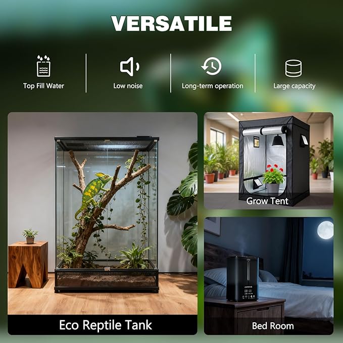 - TOP FILLING & EASY CLEAN: The lid of reptile fogger can be removed easily for cleaning or filling, and you can add water from the top instead of turning over the tank. Please clean the reptifogger regularly 1-2 weeks to avoid leakage or working.