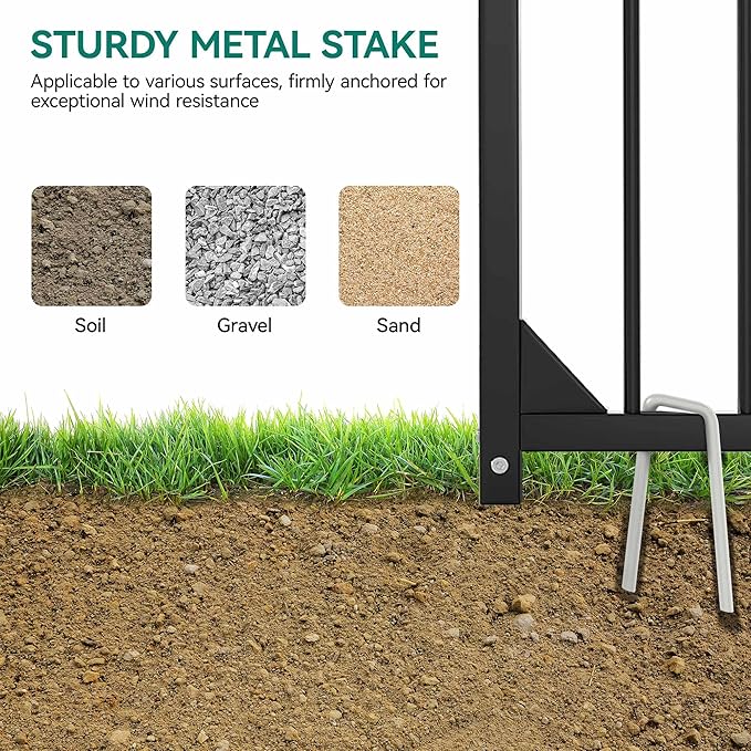 - Simple Setup & Cleanup: Easily assemble the dog fence outside using detailed instructions and no complex tools; The raised legs of the dog run help prevent dirt buildup, creating a fresh, comfy space for your pet to relax after muddy play sessions