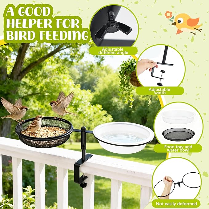 - Adjustable stand:The angle and the width of the balcony bird feeder stand can be changeable for various balcony railings