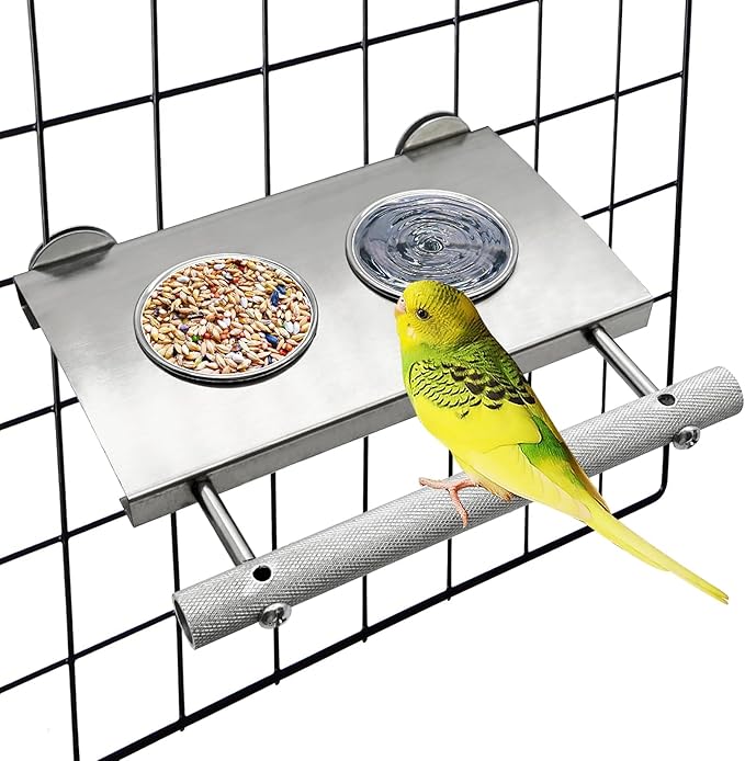 - STAINLESS STEEL BIRD FEEDING CUPS: The bird feeder bowls are made of high-quality stainless steel with smooth edges for long life; great for your bird to stand and feed; This bird cage feeder comes with 2 stainless steel feeding cups; As a bird supply; it not only meets your bird's daily dietary needs but also adds fun