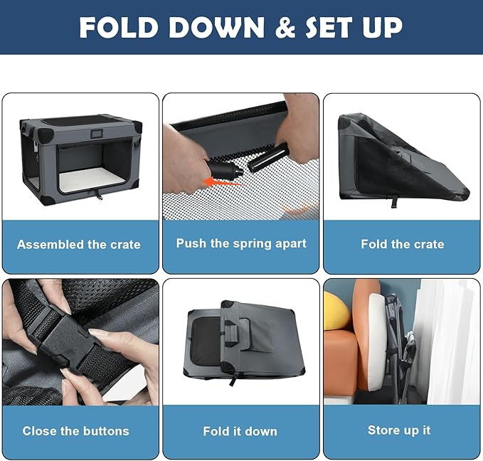 - 【High Quality and Easy To Clean】The soft-sided dog crates is made of high-strength iron pipe and high-quality Oxford cloth, lightweight and sturdy. The Oxford fabric is durable, tear-resistant and easy to clean, ensuring that the crate will last for a long time