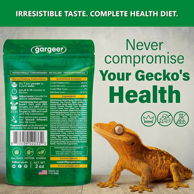 - Fruity, Moist Texture: Won’t dry out quickly — geckos lick the bowl clean.