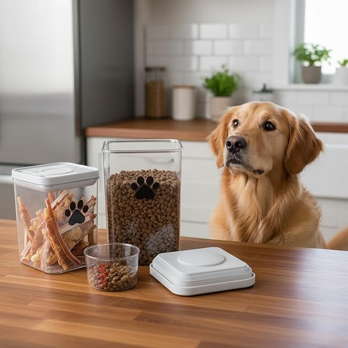 - 【Multi Purpose Dog Food Storage】: Our dog food storage is suitable for storing cat food, dog food, bird seeds, fish food, pet food, rice, nuts, flour, coffee beans, sugar, dry goods, grains, etc. Whether indoors, outdoors, or during travel, it can be easily stored and effectively save valuable space.