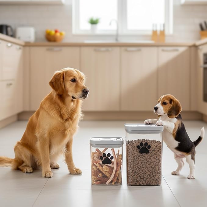 Dog Cat Food Storage Container with Scoop, 2Pack Airtight Plastic Pet Food Storage Containers,Dog Treat Container Jars Set,Treats Canister for Kitchen or Countertop,BPA Free, Clear