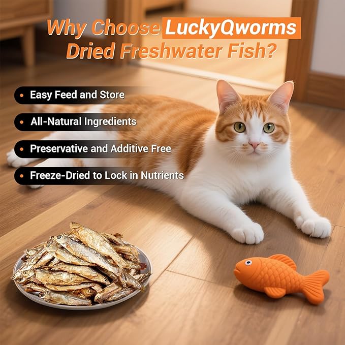 - LuckyQworms Dried Freshwater Fish: LuckyQworms is committed to providing premium ingredients ensuring your diverse pets get the quality nutrition they deserve and you get peace of mind