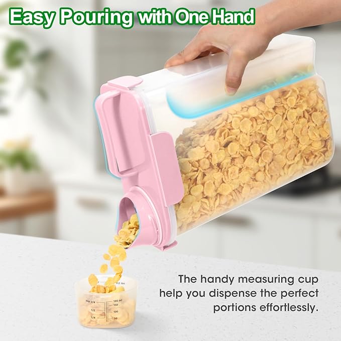 - MESS-FREE FOOD DISPENSER: The cereal storage container features a pouring spout makes it a breeze to dispense your ingredients. Its ergonomic design offers a comfortable grip for easy, single-handed pouring