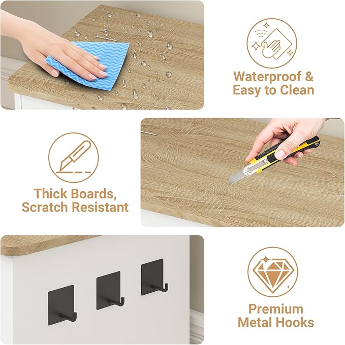 - 【Durable & Functional Design】Built with thick MDF wood for stability, smooth rails for effortless sliding, rounded corners for safe handling, and side hooks for leashes, collars, or toys.