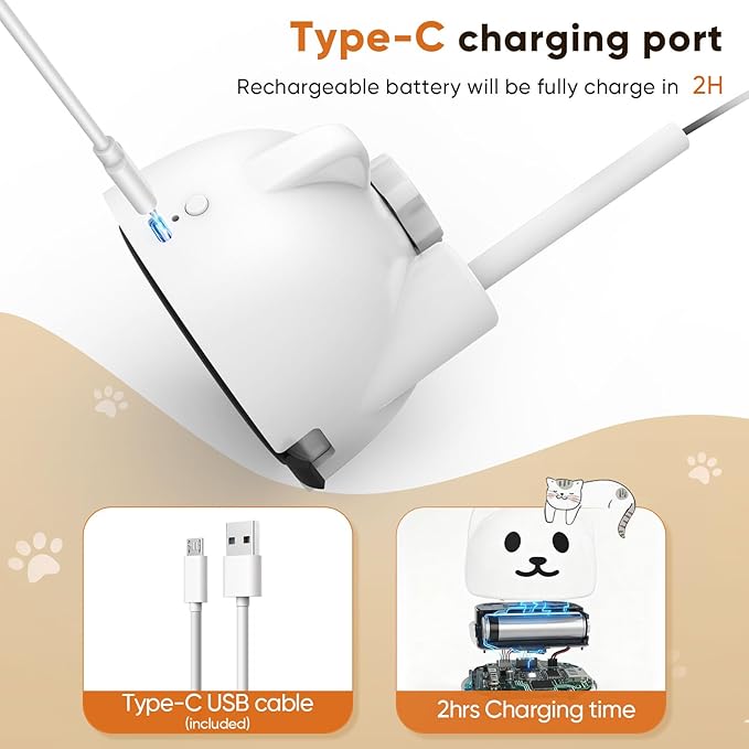 - 【Automatic Sleep Mode & Power Saver】This smart cat toy is designed with auto sleep mode: after 10 minutes of play, it pauses until your cat interacts again. After 5 hours of inactivity, it automatically shuts off, preserving battery life. The low battery alert lets you know when it’s time to recharge.