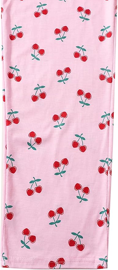 - Pajama Bottoms: Long pajama pants with soft elastic waist and cute cherry print to make relaxing as comfortable as possible.