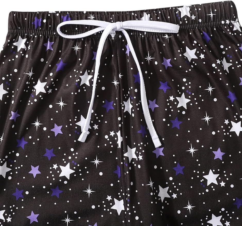 - Pajama Bottoms: Long pajama pants with soft elastic waist and stars print to make relaxing as comfortable as possible.