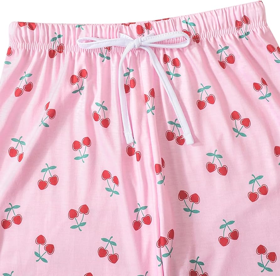 - Pajama Bottoms: Long pajama pants with soft elastic waist and cute cherry print to make relaxing as comfortable as possible.