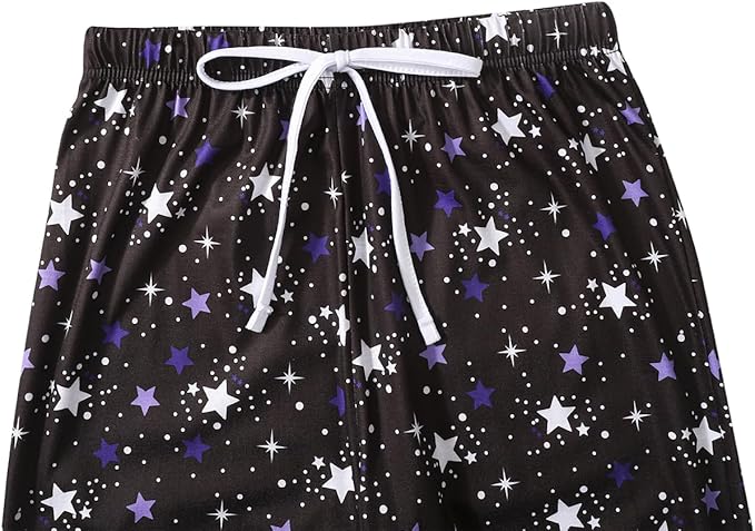 - Pajama Bottoms: Long pajama pants with soft elastic waist and stars print to make relaxing as comfortable as possible.