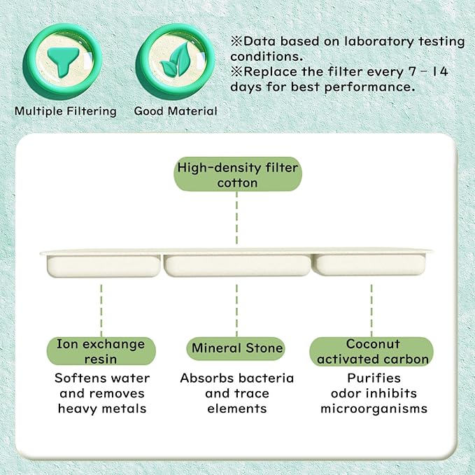 - 【Dual Filtration System for Lasting Freshness】A replaceable filter cotton layer efficiently removes feathers, dust, and other small particles during circulation. This ensures that your bird always enjoys clean, hygienic water throughout every bath. The dual filtration and circulation structure helps reduce bacterial buildup and keeps the system odor-free. Maintenance is simple—just rinse and replace the filter regularly for best results.