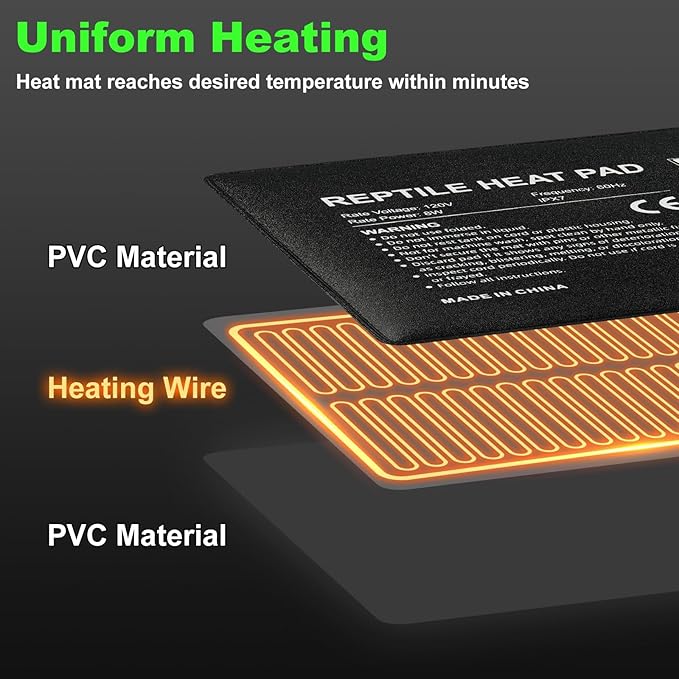 - Energy efficient and Space-saving: The LUCKY HERP heating pad for reptiles can quickly reach the desired temperature within minutes, eliminating long wait times. With fast heating, your pets or plants can enjoy optimal and ideal warmth as soon as possible, without wasting extra time or energy. Even with continuous use, the power consumption remains minimal, maximizing energy savings.