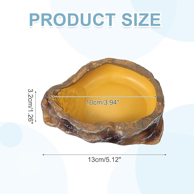 - Product Specifications: Reptile Bowl Size: 13 x 10 x 3.2 cm / 5.12 x 3.94 x 1.26 Inch(L x W x H); Color: Yellow; Material: Resin; Packing List: 1 Pack x Reptile Water Food Bowl