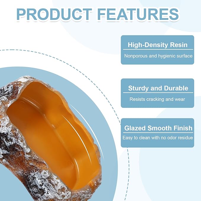 - Quality Materials: The reptile food bowl is made from premium-quality resin. Odorless and easy to clean. With a lightweight yet sturdy build, it can stay with your pets for years to come, is very stable, and not easily tipped over by larger reptile.